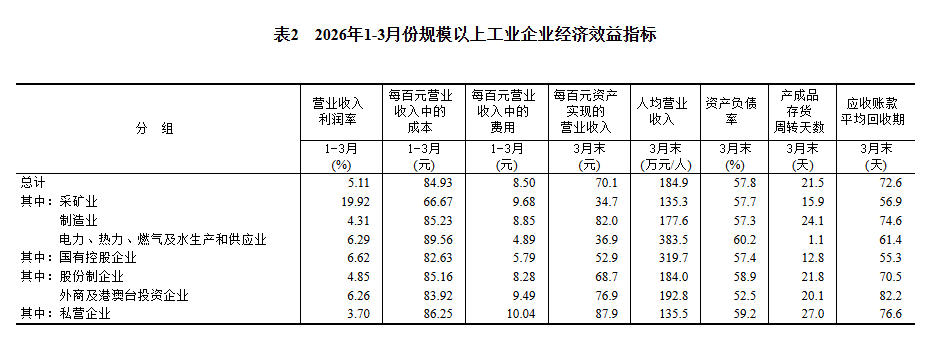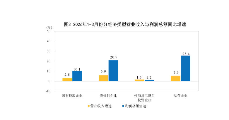 2026年1-3月份全国规模以上工业企业利润增长15.5%
